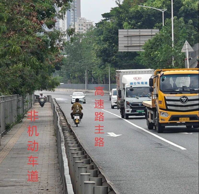 上横朗段周边分布着大量工业厂区和住宅小区,通勤与送货需求旺盛,大量务工人员往返于石岩、大浪之间,而主路旁的非机动车道狭窄被大多数电动车骑行者放弃,铤而走险上主路行驶。